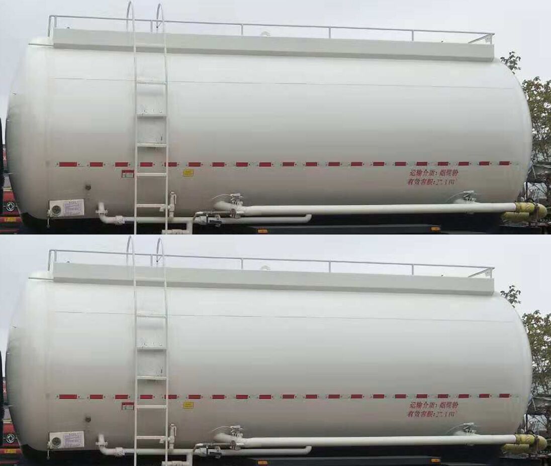 配置 1,随底盘选装驾驶室,高顶驾驶室顶部气喇叭为选装件; 顶部封闭不可开槽,后部不可开启。选装上装结构,介质:烟煤粉,密度420千克/立方米,罐体有效容积:27.3立方米,罐体外形尺寸(直段长×直径) (mm):6200×25002.随底盘选装同系列驾驶室;安装具有卫星定位功能的行驶记录仪;3.侧后防护材料均采用Q235-A,焊接连接,后防护截面高度尺寸210mm, 截面宽度尺寸50mm,下边缘离地高度460mm。该车安装具有卫星定位功能的行驶记录仪;ABS生产厂家:东科克诺尔商用车制动系统(十堰)有限公司;型号:3631010-C2000,发动机ISD245 50、ISD270 50油耗值同为35.4L/100km。选装罐体左右两侧的管道。