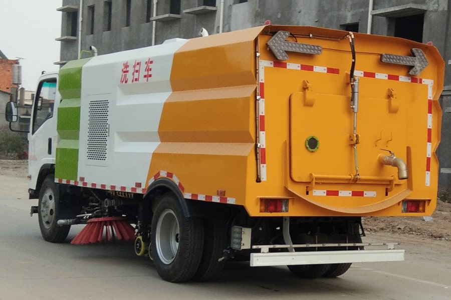11、五十铃5吨多功能洗扫车的垃圾箱内带有自洁功能,在垃圾倾倒完成后可将箱内的残留垃圾冲洗干净,减轻环卫工人的负担。